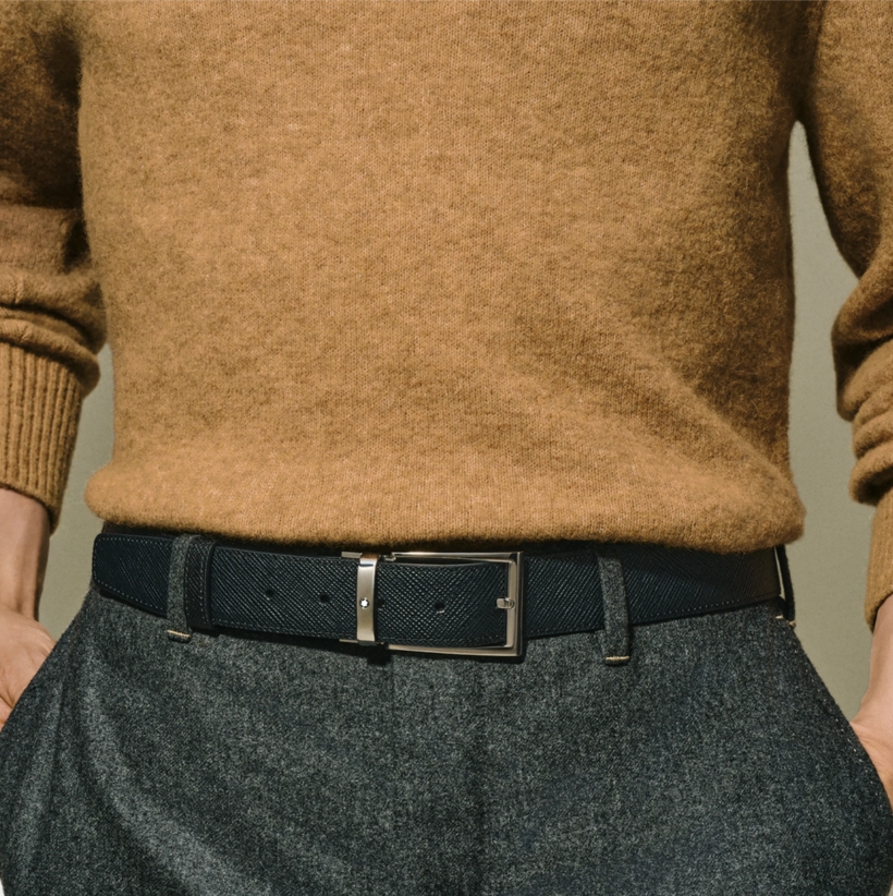 Двухсторонний мужской ремень Montblanc: кожа черного и коричневого цвета 35 мм от магазина премиальных ручек Premium Pens в Иркутске.